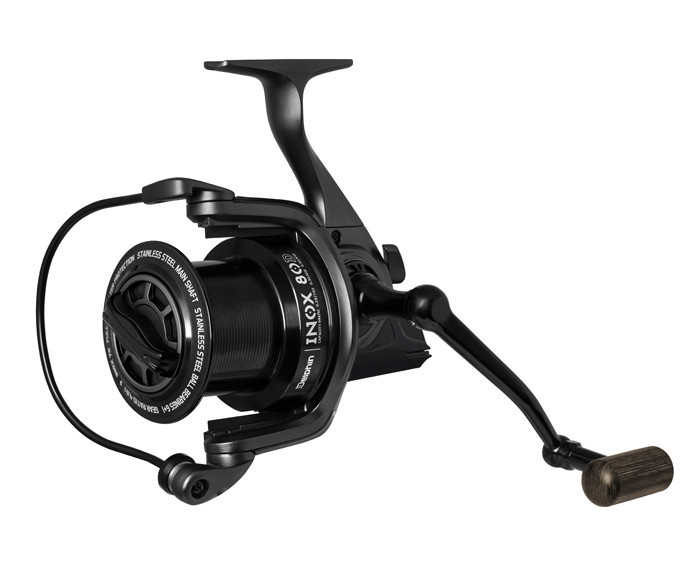 Designul elegant este completat de mânerul de lemn al manivelei, prelucrat cu precizie, care se potrivește perfect în mână. Familia de mulinete INOX este disponibilă în două variante, denumite 70D și 80D. Varianta mai mică, 70D, are o dimensiune mai compactă și o greutate mai mică, fiind recomandată pentru ape mai mici. 80D este o mulinetă cu o capacitate mare a tamburului, care, datorită construcției sale robuste, se descurcă bine chiar și în cele mai dificile condiții, la pescuitul la crap. Tamburul său poate primi o mulțime de fir, oferind posibilitatea de a pescui la distanțe mari și de a realiza lansări lungi. Pe lângă dimensiune, principala diferență constă în designul manivelei. La modelul 80D, designul este tradițional, astfel axul trece prin corpul mulinetei și este fixat cu o piuliță pe cealaltă parte. La modelul 70D, manivela se înșurubează direct în corpul mulinetei, eliminând orice joc. Ambele mulinete sunt echipate cu 6+1 rulmenți din oțel inoxidabil, asigurând o funcționare lină și silențioasă. Capul rotativ al mulinetei este prevăzut cu piese discrete, care împiedică firul să cadă sub tambur și alte neplăceri. Ambele modele au o oscilație lentă a tamburului "slow oscilation", datorită căreia firul se așează frumos pe tambur. Acest lucru permite firului să iasă mult mai ușor la lansare, permițând lansări mai lungi. Elementele interne din oțel inoxidabil, rezistente la apă sărată, asigură o durată lungă de viață, făcând mulineta un partener perfect chiar și în cele mai dificile condiții. Pachetul de bază include atât un tambur superficial, cât și unul adânc.