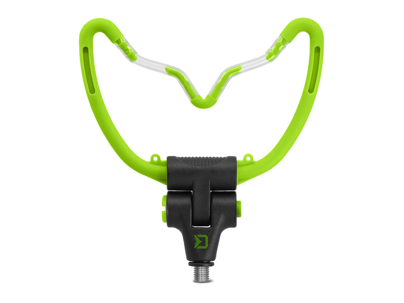 Suportul de undiță Delphin REAXE în formă de „V” este un suport practic și fiabil, util pentru orice pescar de feeder. Forma sa specială asigură o alunecare lină a firului în cazul unei mușcături. Mecanismul de la bază permite reglarea unghiului de înclinare, astfel încât suportul poate fi adaptat la condițiile terenului. Are 14,5 cm lățime. Buclele pentru fixarea cârligului sunt accesorii utile la umplerea coșului feeder. În plus, dispune de 4 fante pentru lumini chimice, pentru un pescuit nocturn confortabil. Dispune de un filet universal, fiind astfel compatibil cu majoritatea pichetelor și suporturilor de undițe. Este disponibil în culorile verde și negru, potrivindu-se perfect cu seria de feeder REAXE.