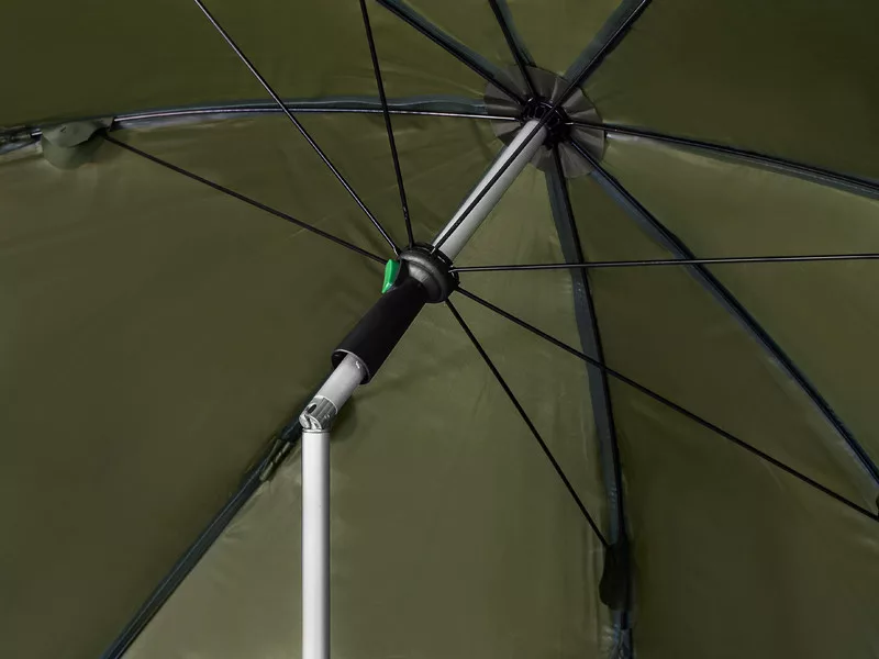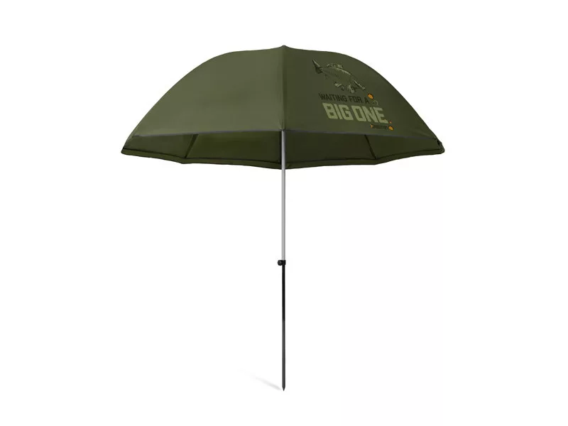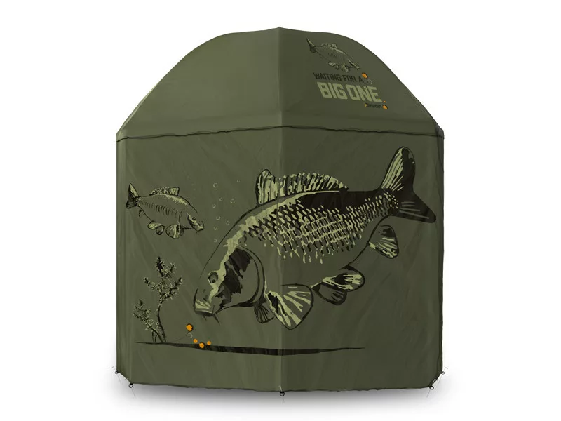 Cupola și pereții laterali ai umbrelei sunt decorate cu o grafică distinctivă de crap, potrivindu-se perfect pentru pescarii de crap. Cupola cu diametrul de 250 cm oferă suficient spațiu pentru două scaune de pescuit și o măsuță. Tija telescopică permite ajustarea înălțimii umbrelei, fiind potrivită pentru pescari de orice statură. Țepușa din bază facilitează fixarea umbrelei în pământ.