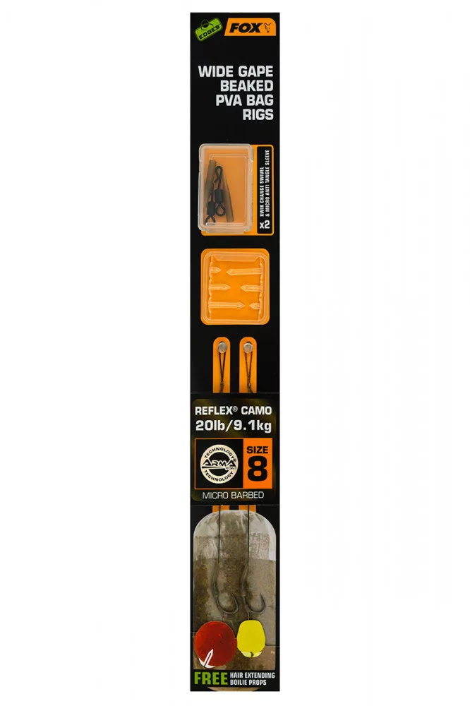 Fox EDGES™ Wide Gape Beaked PVA Bag Rigs 20lb Size 8 Brown & Green Cârlig pre-legat