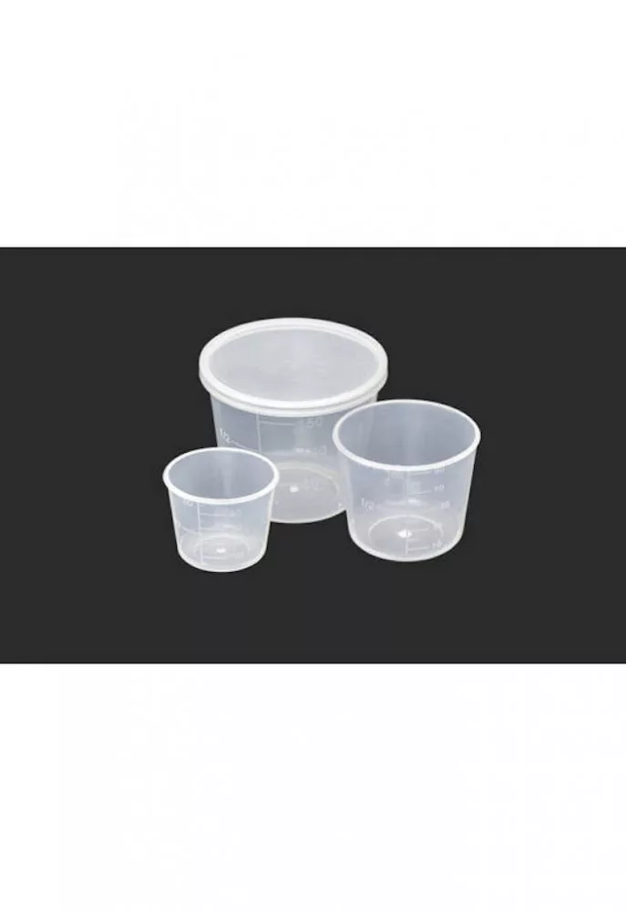 Set de pahare gradate. Set de trei pahare pentru dip, cu capac și scară gradată, în care pot fi aromatizate momelile destinate cârligului.