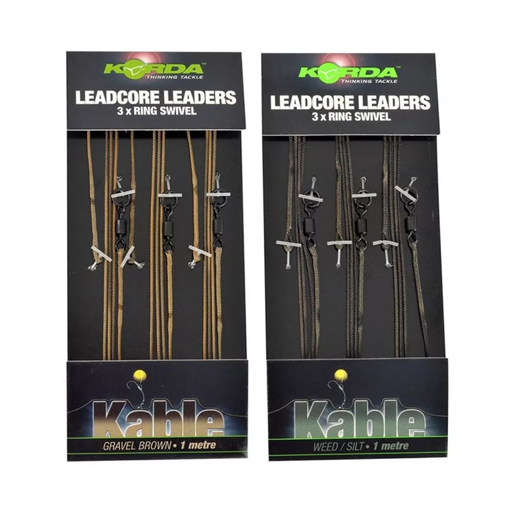 Liderii Korda Leadcore Ring Swivel sunt disponibili în lungimi de 1 metru și 50 cm, astfel încât poți alege cu ușurință liderul cel mai potrivit pentru situația de pescuit. În pachet vei găsi trei lideri, care sunt disponibili în culorile Nămol/Burian sau Maro Pietriș, astfel încât culoarea aleasă se integrează ușor în mediul subacvatic, ascunzând discret montura de pescuit.